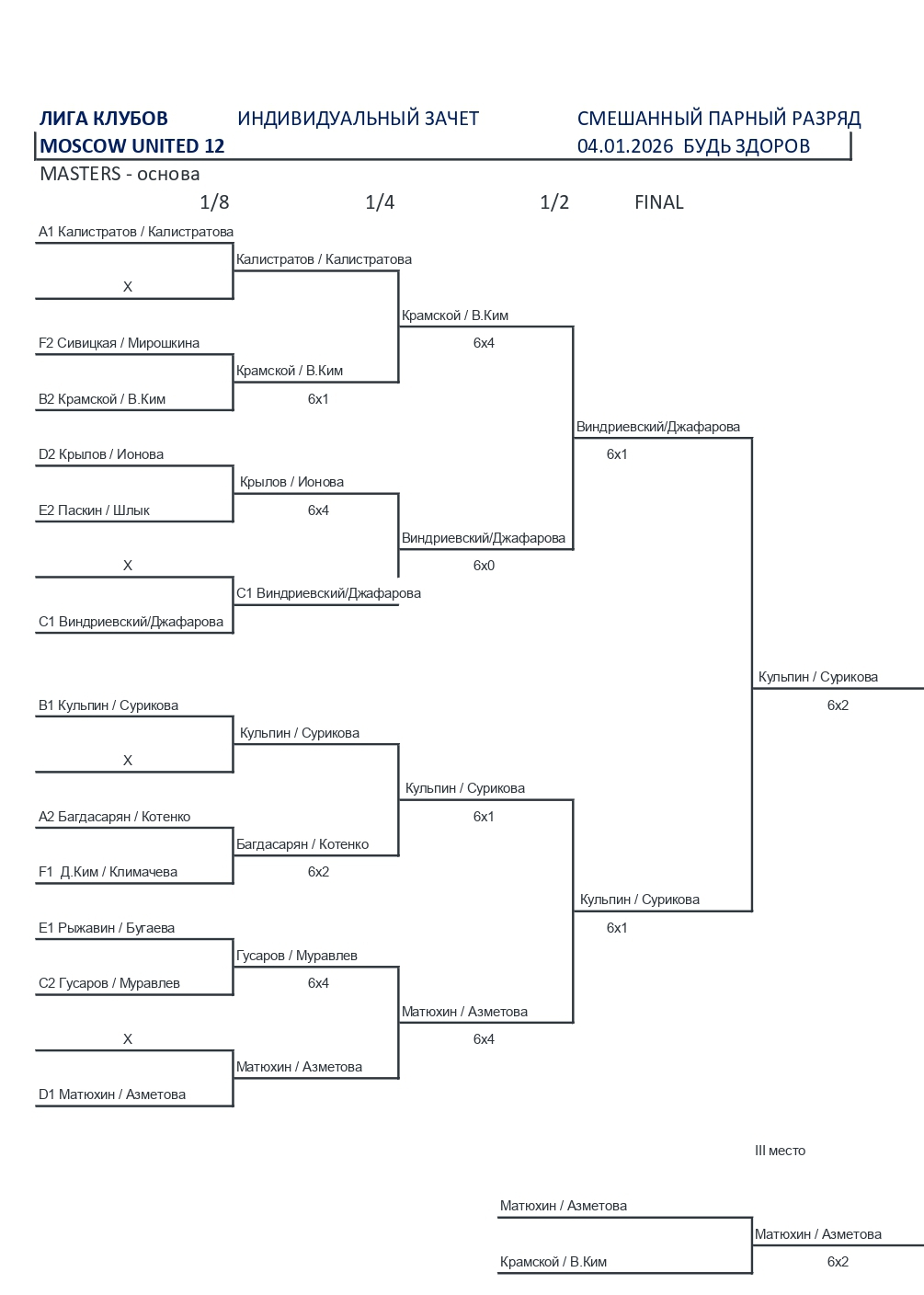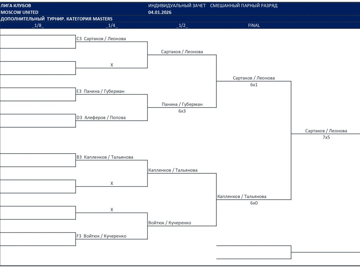 | Светлана Леонова / Илья Сартаков | 1 место доп турнир |