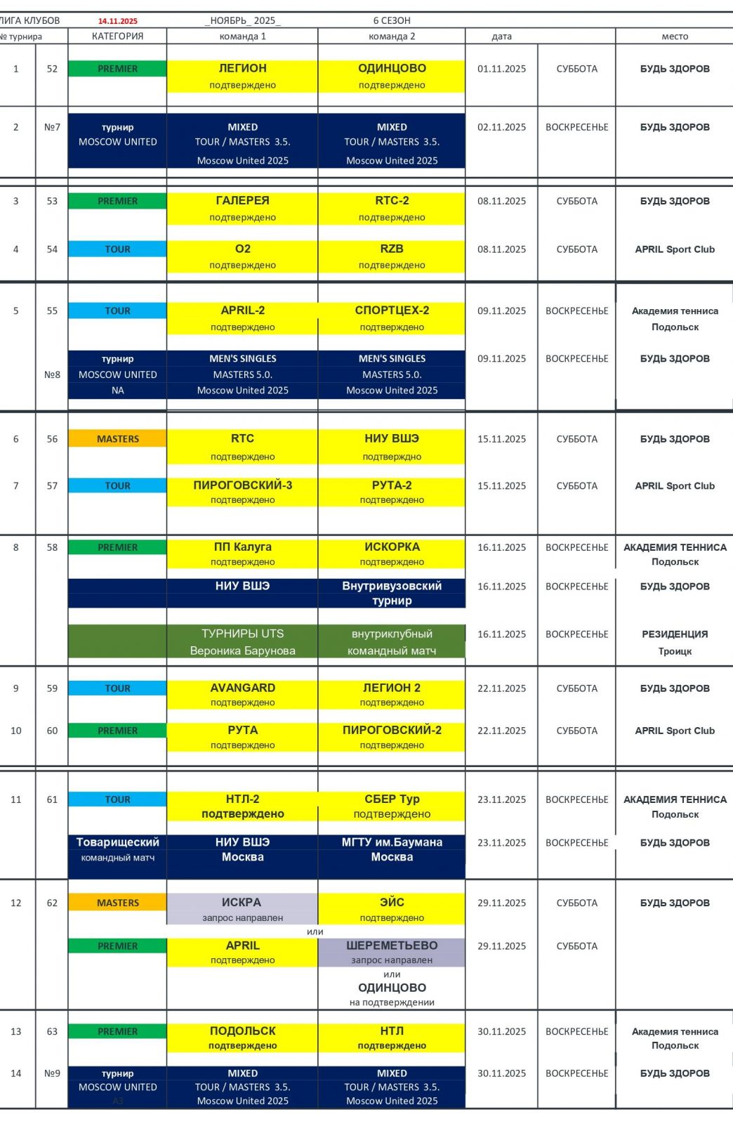 Пятница, 14.11.25 — APRIL, 4 корта грунт улица/ хард зал. 20:00 — 23:00;